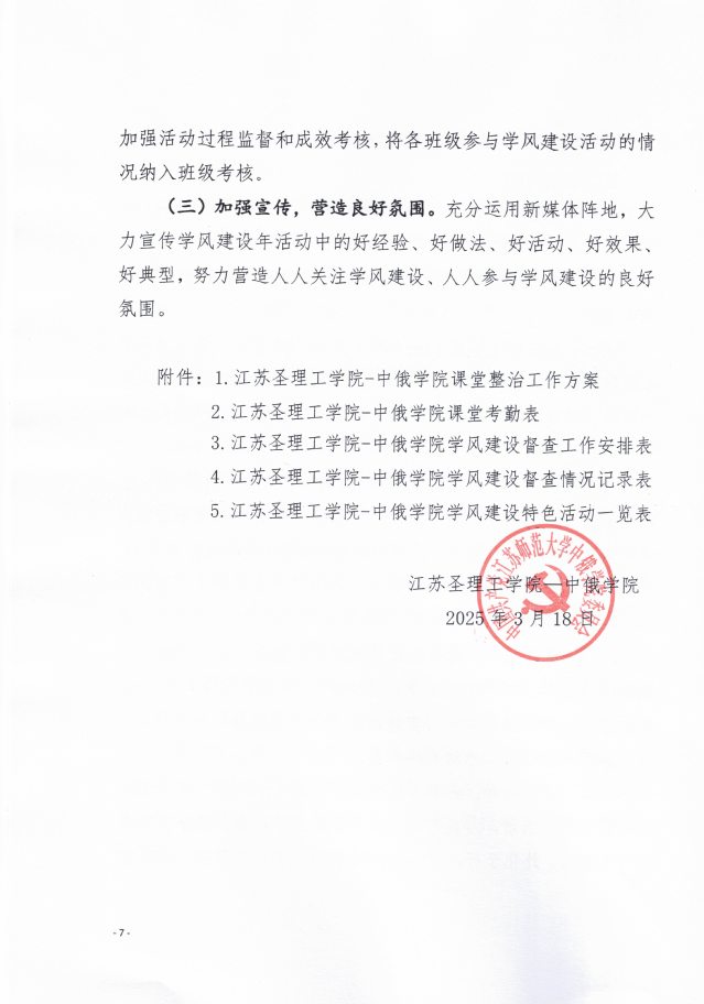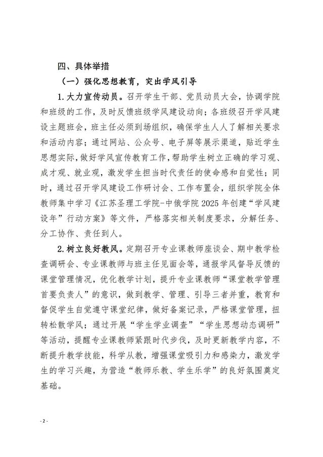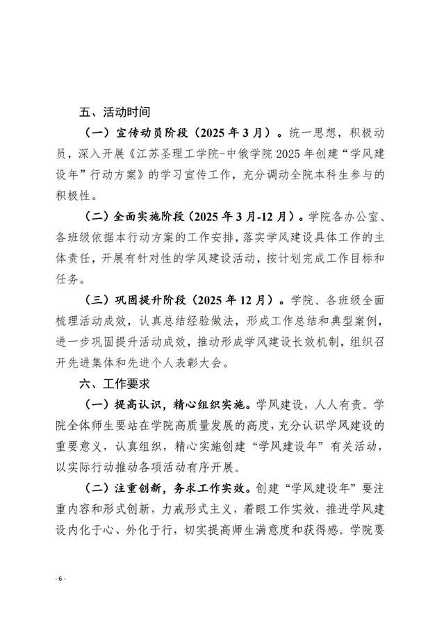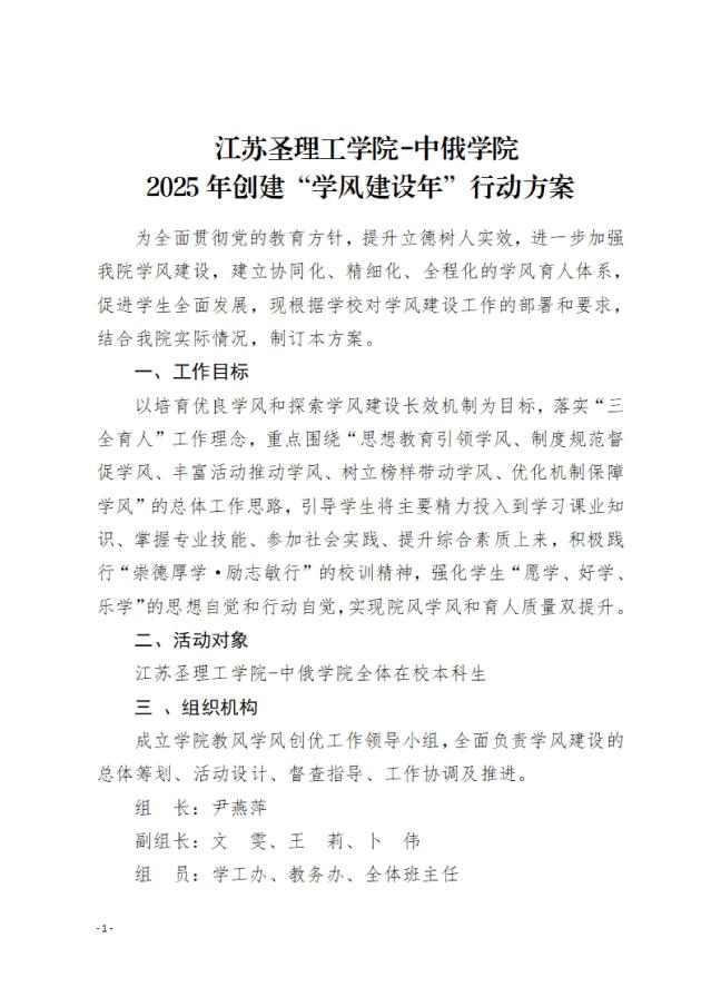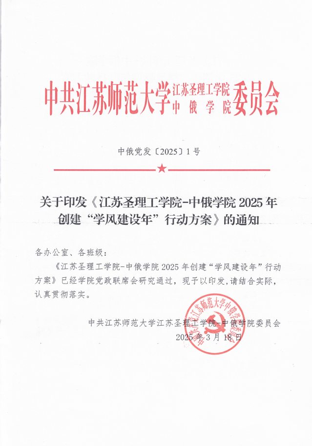 关于印发《江苏圣理工学院-中俄学院2025年创建“学风建设年”行动方案》的通知