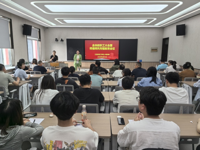 5月21日下午,江苏圣理工学院-中俄学院在西教13-514多功能教室开展师德师风专题教育大会暨教职工综合能力提升工程专题培训会议。会议由学院党委书记尹燕萍主持,全院教职工、班主任及学生干部代表参加。