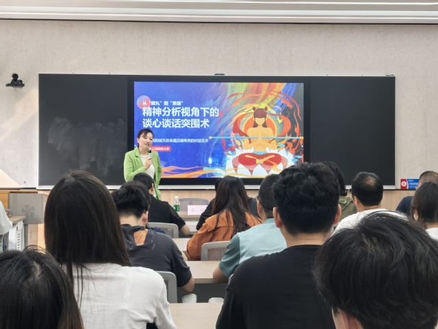 会议第二阶段特邀学校学工部副部长石岭做题为“从‘魔丸’到‘英雄’精神分析视角下的谈心谈话突围术”专题培训。石岭副部长以电影《哪吒2》为引,从“标签与防御机制”为切入点,借哪吒遭排斥类比学生被贴标签后的自证预言效应,解析合理化、退行等防御机制表现及影响;以李靖夫妇养育智慧为例,阐述了辅导员“容器修炼”的具体举措,强调要营造抱持性环境,助力学生成长;解析了“敖丙式”假自我困境,提醒辅导员日常工作中要善于识别“陷阱”;此外,她还分享了“山河社稷图”辅导员工具箱,阐释辅导员谈心谈话关键技巧;最后,结合互动剧场,通过角色反转体验实战演练,现场展示如何提升谈心谈话实效。