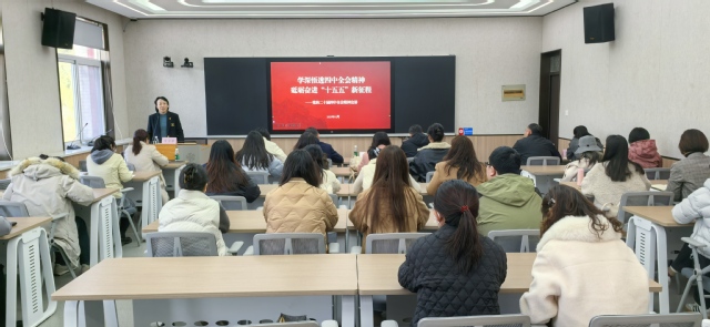 报告会上,潘震鑫以《学深悟透四中全会精神砥砺奋进“十五五”新征程》为主题,从党的二十届四中全会召开的基本情况切入,围绕“‘十五五’时期经济社会发展的重大意义、指导方针和主要目标、重大战略任务及如何贯彻落实党的二十届四中全会精神”等四个维度全面系统、深入浅出地阐述了“十五五”规划建议的核心要义和丰富内涵。整场报告主题鲜明、逻辑严密、内涵丰富,具有很强的理论性和实践指导性,为全体与会师生更好更全面深刻理解党的二十届四中全会精神提供了有力指导。