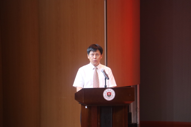 校党委常委、副校长董晓臣在典礼上致辞,代表校党委、校行政向圆满完成学业的毕业生同学表示衷心地祝贺,向辛勤培育、关心支持毕业生成长的家长和老师致以衷心感谢和崇高敬意。董晓臣在致辞中带领全体毕业生同学回顾了四年求学之路的点点滴滴和中俄学院建院十年取得的发展成就。他指出,当代青年施展才华的舞台无比广阔,实现梦想的前景无比光明。要坚定理想信念,厚植爱国情怀;要锤炼品德修为,坚持终身学习;要勇于砥砺奋斗,练就过硬本领。