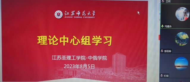 8月5日下午,江苏圣理工学院-中俄学院线上开展理论学习中心组第七次专题学习。会议由学院党委书记冯遵永主持,理论中心组成员、领导班子成员参加。