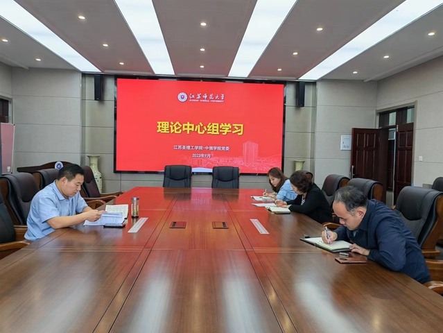 9月28日下午,江苏圣理工学院-中俄学院党委理论中心组在学院525会议室开展了第九次专题学习。会议由学院党委书记冯遵永主持,理论中心组成员、领导班子成员及党支部书记参加。